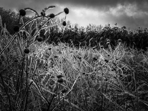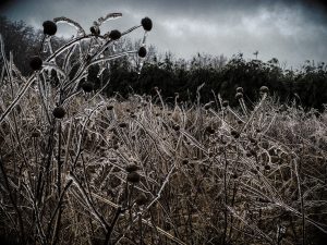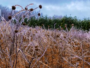There was a layer of ice on everything—branches, grass, the smallest details all frozen in place.